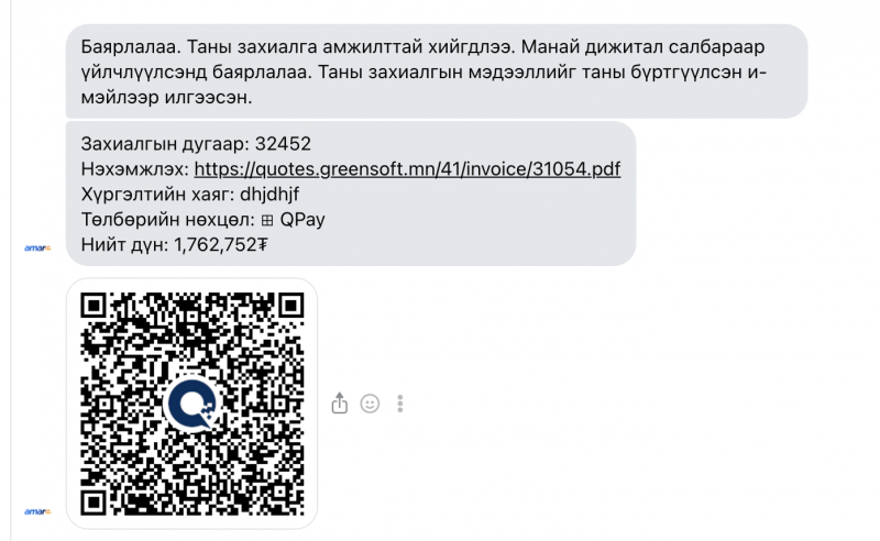 Чатботоор захиалга хүлээн авч захиалгыг админ хэсэгт эцсийн хэрэглэгчийн гарт хүргэх хүртэл удирдах бүрэн боломжтой.
